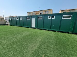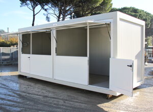 di monoblocchi prefabbricati. I nostri monoblocchi prefabbricati sono realizzati con professionalità e con l’utilizzo di materiali di altissima qualità. Modulari in larghezza e lunghezza, possono essere ampliati e modificati a piacimento. Oltre ai cantieri e agli impianti sportivi, sono allestibili per molteplici utilizzi: dagli uffici e spogliatoi, agli stand fieristici, ai locali espositivi, nonchè come box auto e servizi igienici e comunque in molte altre soluzioni. Per i nostri clienti, i monoblocchi sono consegnati direttamente sul luogo di destinazione, sapientemente montati e resi da subito pronti all’uso. I nostri monoblocchi non necessitano di ancoraggio al suolo e sono dotati di una struttura portante funzionale. Questo rende i monoblocchi assolutamente movibili e quindi facili da caricare e spostare ad ogni esigenza, facilissimi quindi da trasportare!
